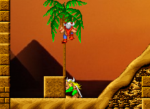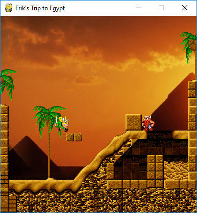 If we now play the tutorial.py game, Erik should be able to climb up and down the trunk of the palm tree (using the up and down arrow keys):