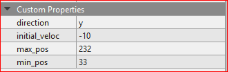 Now select both of them and set their autobuild_class to “spygame.examples.vikings.FireSpitter”. Also give both of them another new custom property called “P_frequency” (float) and set the value to 0.3. Then select only the left one and create the new custom property “P_direction” (string) = “left” and do the same for the right fire spitter (“P_direction” (string) = “right”). You can see that additional parameters to the autobuild constructors must have a preceding “P_” so that spygame recognizes these as autobuild c’tor parameters: